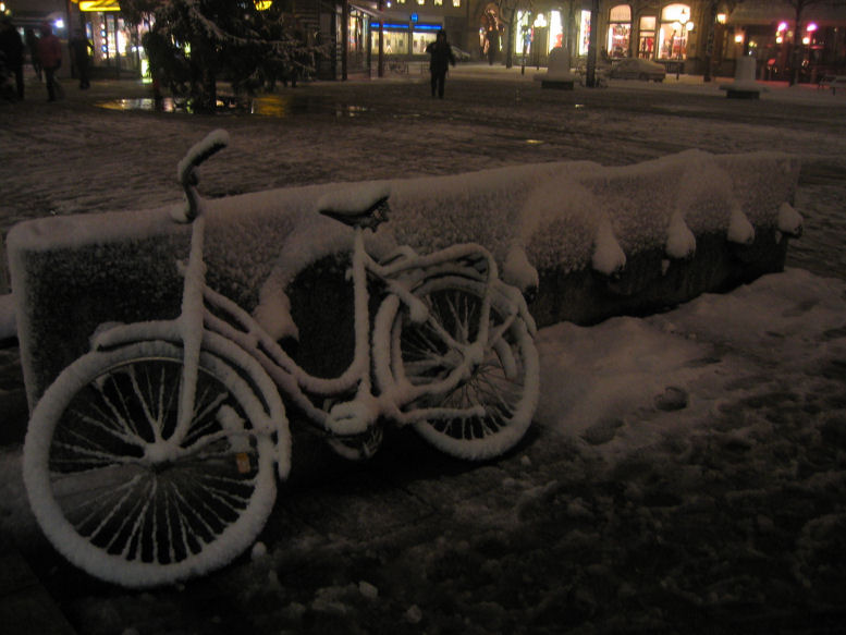 A snowy street in Stockholm. |